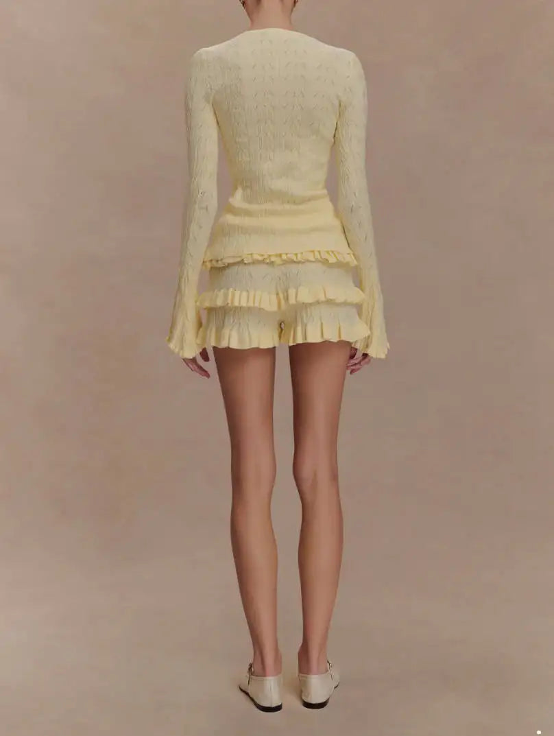 A&A Lolita Knitted Ruffle Shorts & Cardigan Set